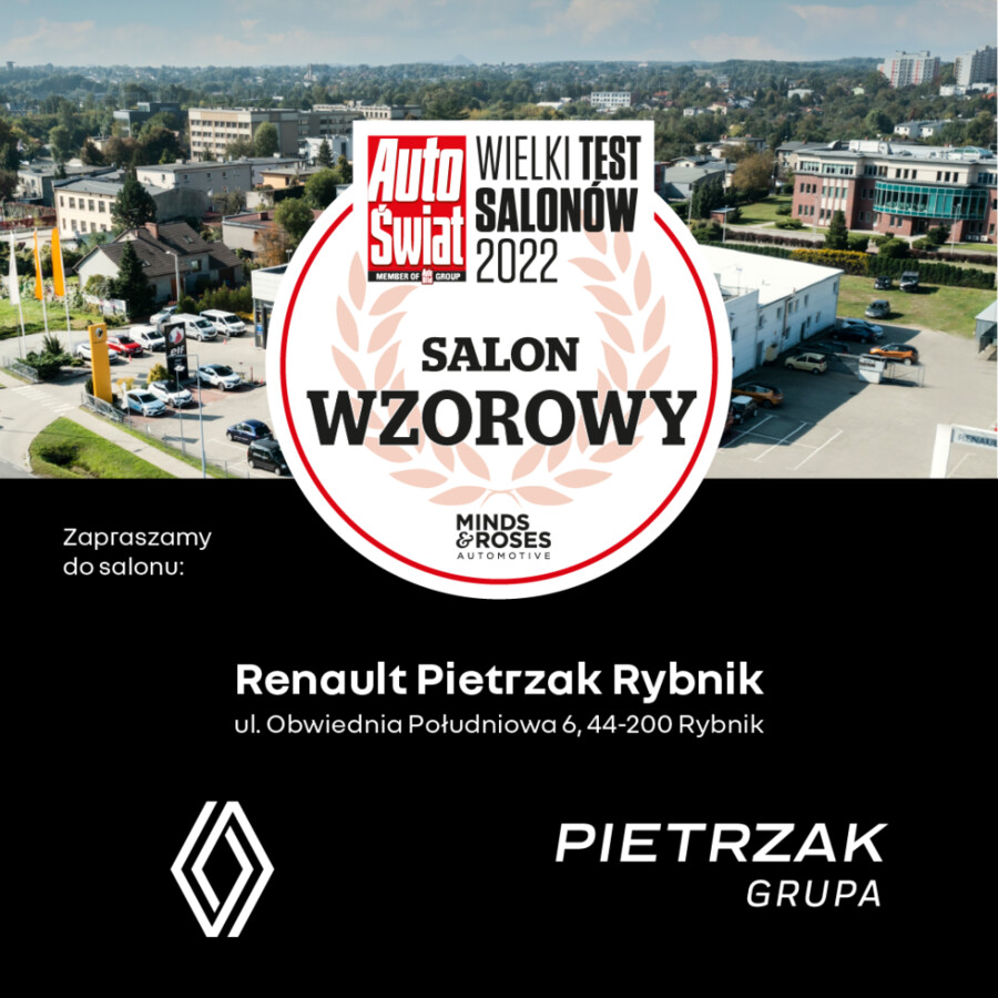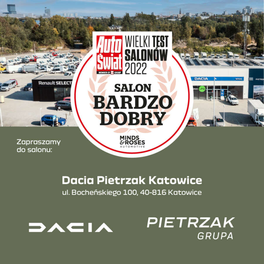 Najnowszy test magazynu „Auto Świat” Grupa Pietrzak zdała z wyróżnieniem – tytuł wzorowego salonu przypadł Renault Rybnik, a tytuły bardzo dobrego salonu otrzymały Peugeot i Dacia Katowice.