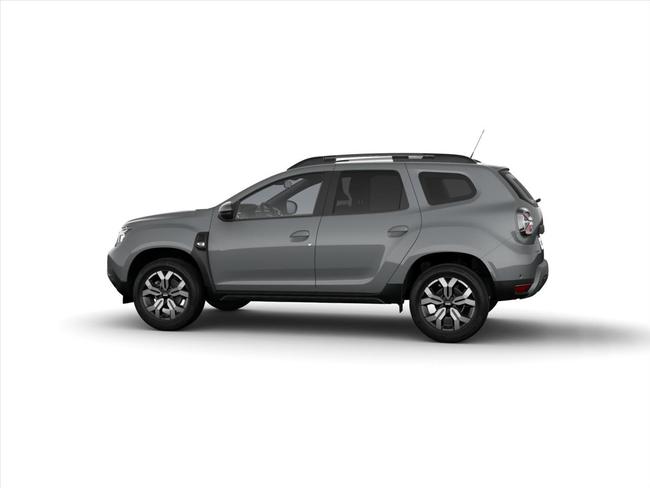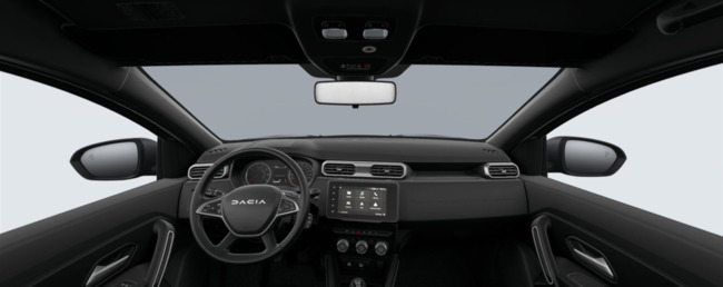 - Tapicerka materiałowa w kolorze czarnym z białymi przeszyciami i logiem Duster