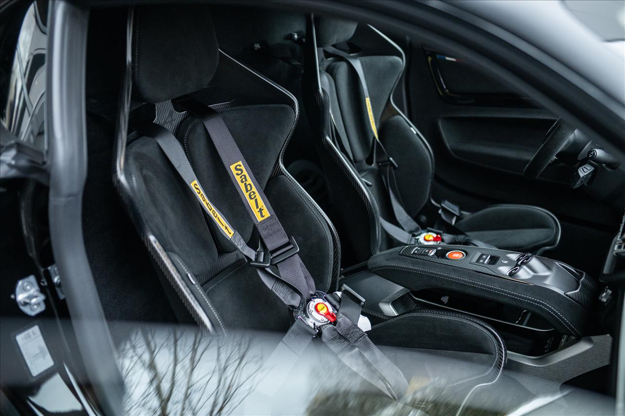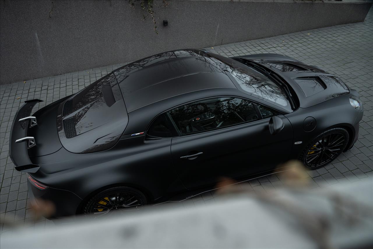 - Dach pokryty błyszczącym czarnym włóknem węglowym