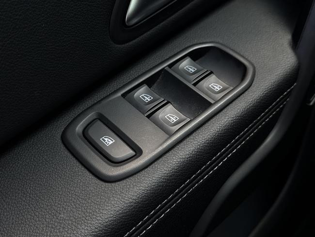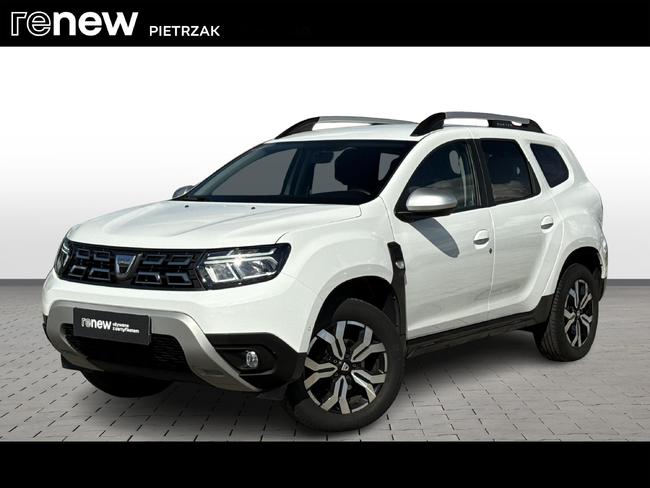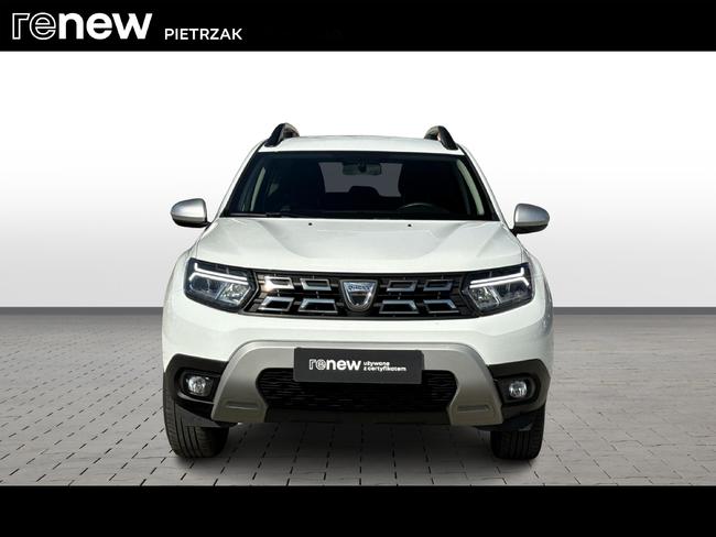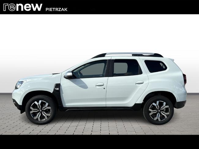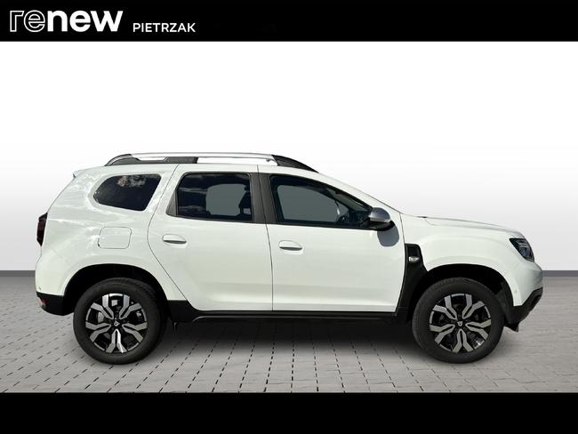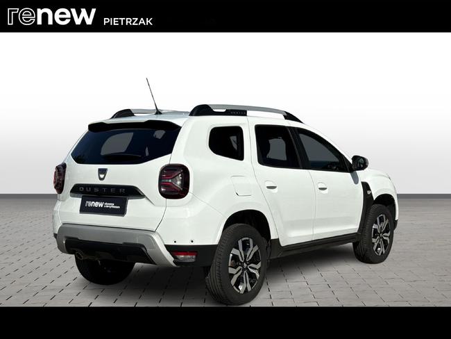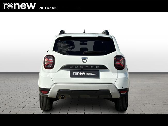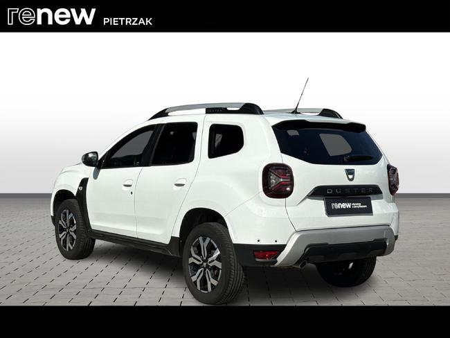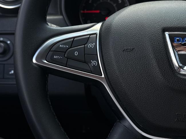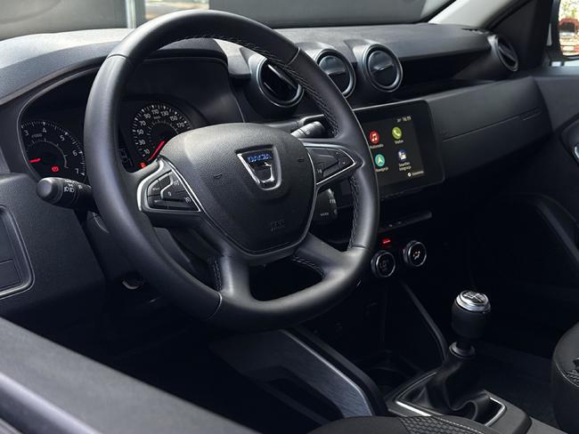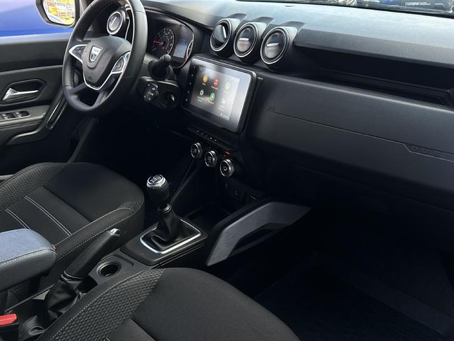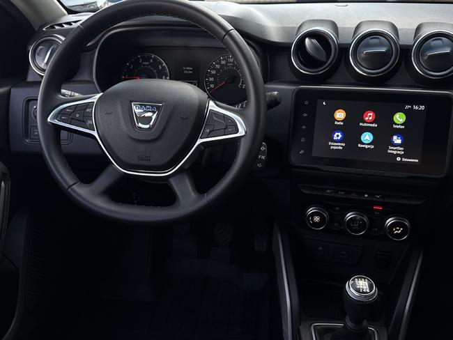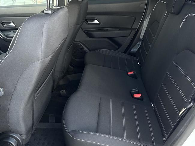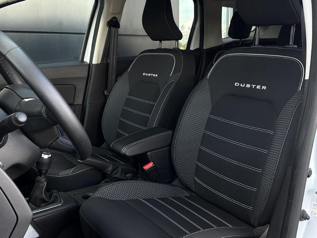 - Tapicerka materiałowa w kolorze czarnym z białymi przeszyciami i logiem Duster