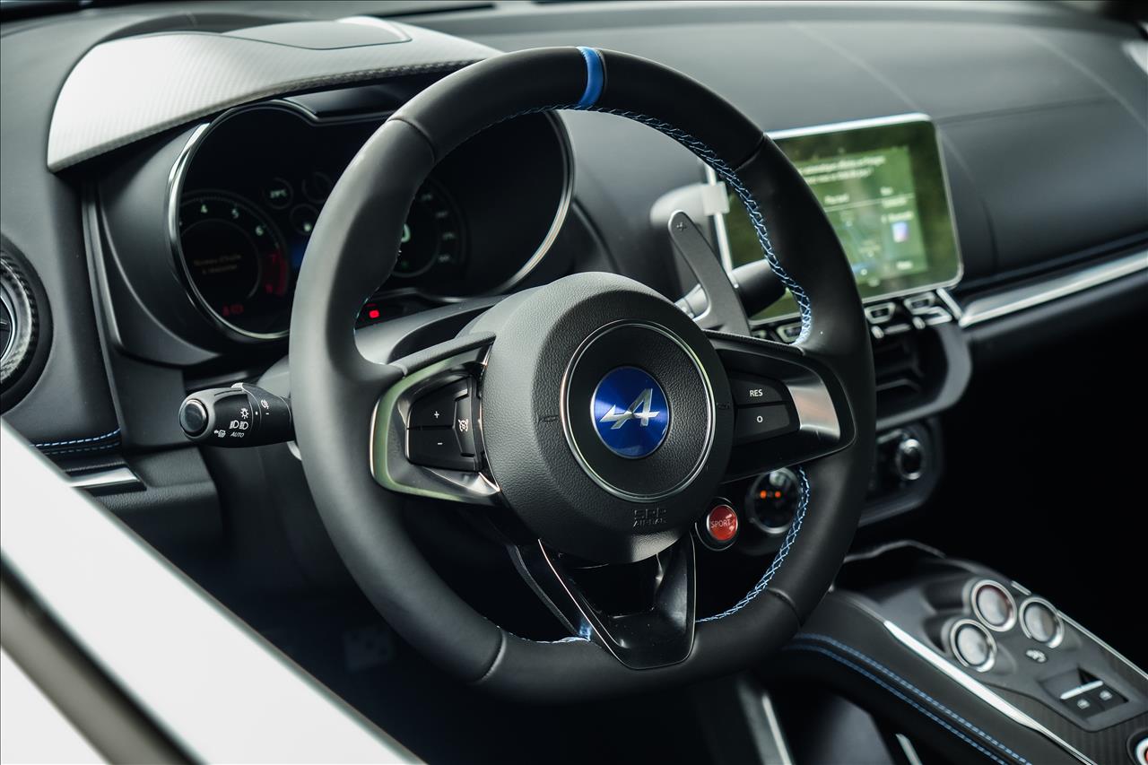 - Logo Alpine na kierownicy w kolorze Niebieski Alpine