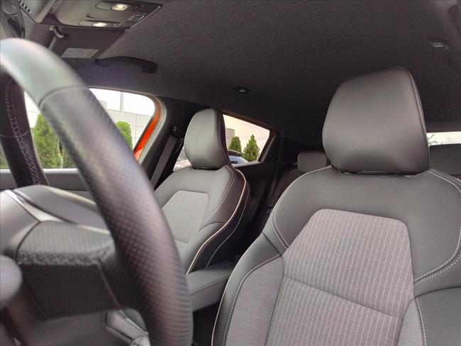 - Tapicerka materiałowa czarna z elementami skóry ekologicznej